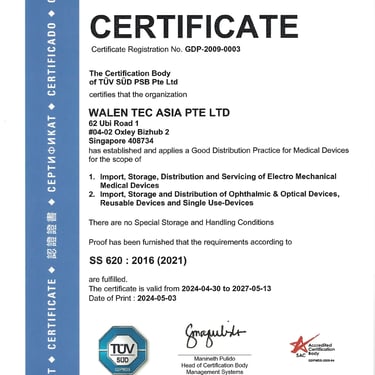 Walen Tec Asia Pte Ltd is a Swiss-based medical and healthcare concept company incorporated in September 1999. Dedicated to executive medical and healthcare marketing, Walen Tec represents many first-class brands of medical and healthcare equipment and devices from Switzerland, Germany, Italy and other European countries.