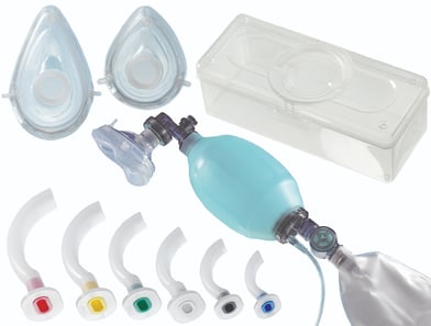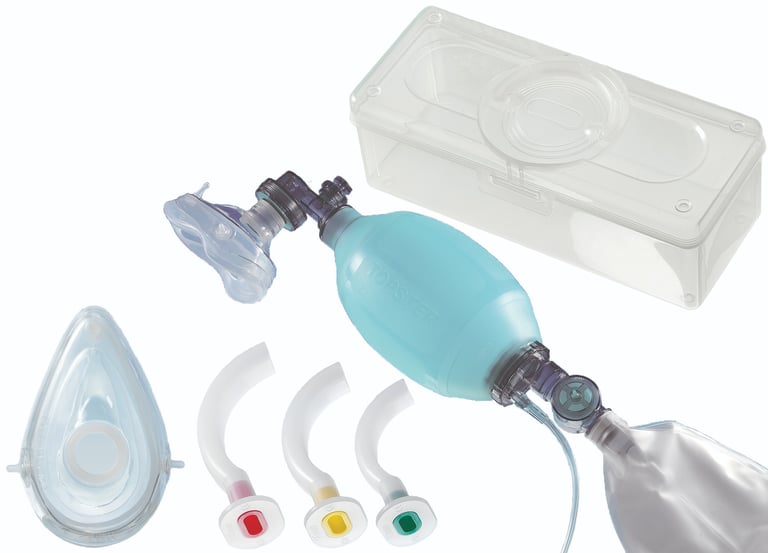 Curved pharyngeal airway tube for short-term intubation of the pharynx, to keep the respiratory tracts of an unconscious person free. Non-Sterile